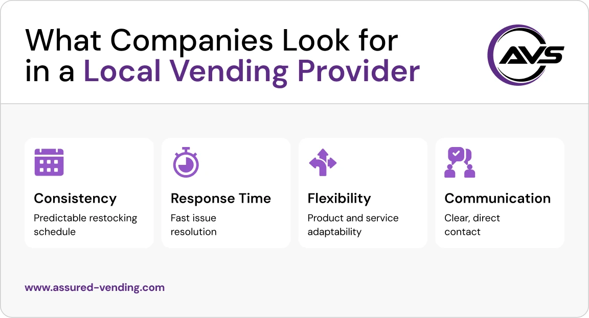 Selecting a vending provider involves more than equipment. Here’s what organizations evaluate when choosing a local partner.